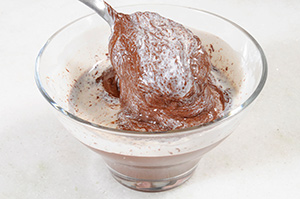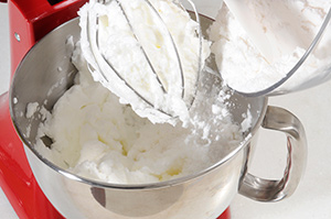 Coloque essa mistura já fria do cappuccino com gelatina nas claras e continue batendo.